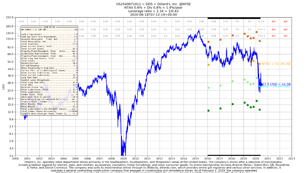 Bien entendu, impossible de valoriser la crise actuelle et les conséquences sur la société. Les impacts pourraient remettre complètement l'activité de Dillard's en cause. On reste donc prudent même si le potentiel paraît très élevé sur cette action.