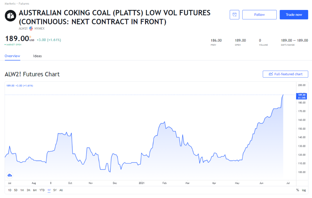 Mais l'important est me semble-t-il ailleurs avec la progression spectaculaire des cours du charbon métallurgique depuis la mi-mai (voir graphique dans le message précédent). Sous réserve que les zones exploitées à Kestrel soient toujours dans la partie sous la redevance d'Anglo alors les revenus vont grimper en flèche (d'autant que le royalty est progressif). Le cobalt semble aussi bien orienté et commence a contribué aux rentrées cash.