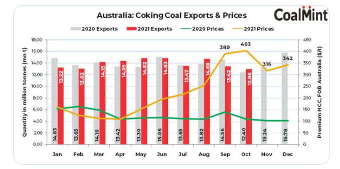 Le cours du charbon métallurgique aussi, même si nous ne sommes plus sur les plus hauts :