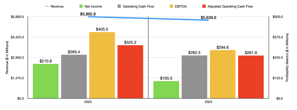 montant, qui, selon la direction, était le résultat de l'ouragan Helene, n'a eu qu'un impact sur les revenus de 14 millions de dollars. L'entreprise a également eu une semaine d'exploitation supplémentaire en 2023. Cette semaine supplémentaire a rapporté 106,7 millions de dollars de revenus supplémentaires en 2023. Sans cela pris en compte, les revenus auraient chuté de 2,5 %.