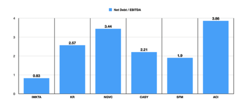 L'article source compare également les ratios Price to Sales, Price to Book et Net debt to EBITDA avec 4 concurrents comparables d'IMKTA.