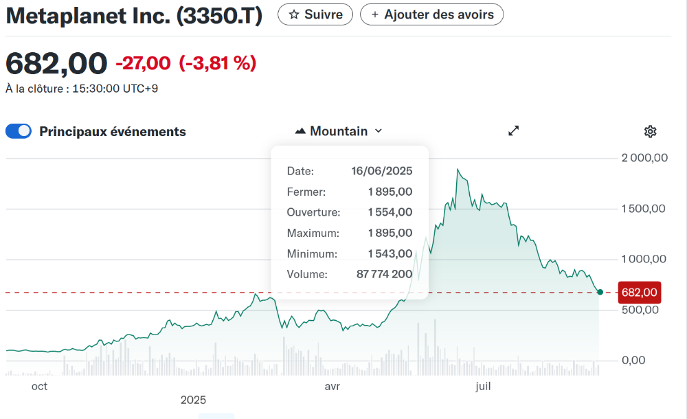 Je viens de racheter cette nuit ma ligne Metaplanet (3350) à 800 JPY. Ce qui me permet - une nouvelle fois en quelques mois - de réaliser un gain de 20% en 1 mois.Franck des daubasses a écrit : ↑01 septembre 2025, 11:24