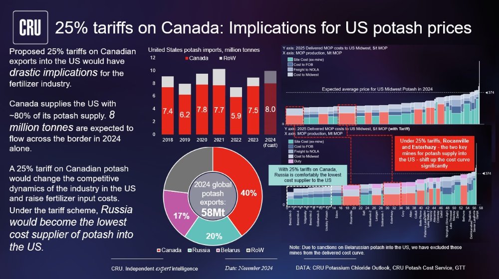 Impact des tarifs douaniers sur le cours de la potasse aux USA