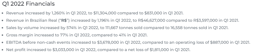 Si cela perdure jusqu'à la fin de l'année, comme nous l'a indiqué la banque mondiale qui envisage des prix élevés jusqu'en 2024, rien que l'augmentation du prix justifierait un bénéfice par action supérieur à 1,0 CAD. Ajouter à cela une augmentation du volume de 40% pour atteindre 1M tonnes et cela pourrait être encore bien supérieur.