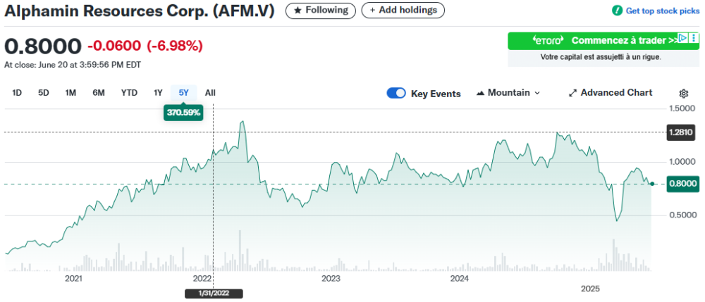 Au printemps 2022, Denham Capital cherchait déjà un repreneur. A l'époque Alphamin a coté jusqu'à 1,4 CAD.