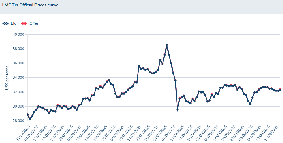 L'étain cote 35 865 USD/t à Londres. Au même niveau que dans mon précédent message mais en baisse car les 38 000 ont été atteints en séance il y a 2 jours. L'effet Trump. Même si pour le moment l'étain, comme les semi-conducteurs, échappent aux taxes.