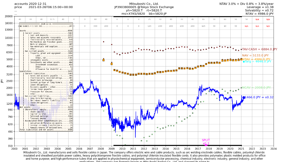 Voici les données récentes (cours utilisé à la date du rafraichissement 1408 JPY) :