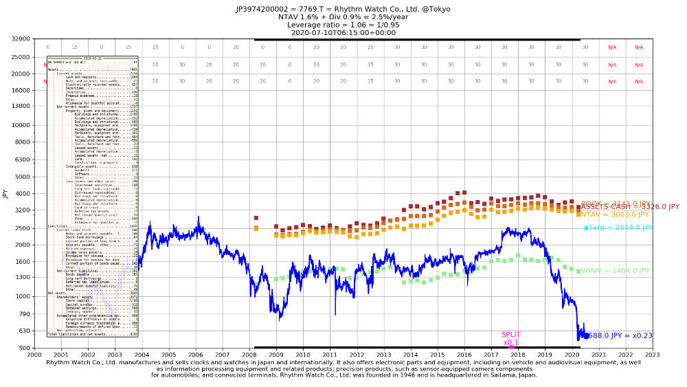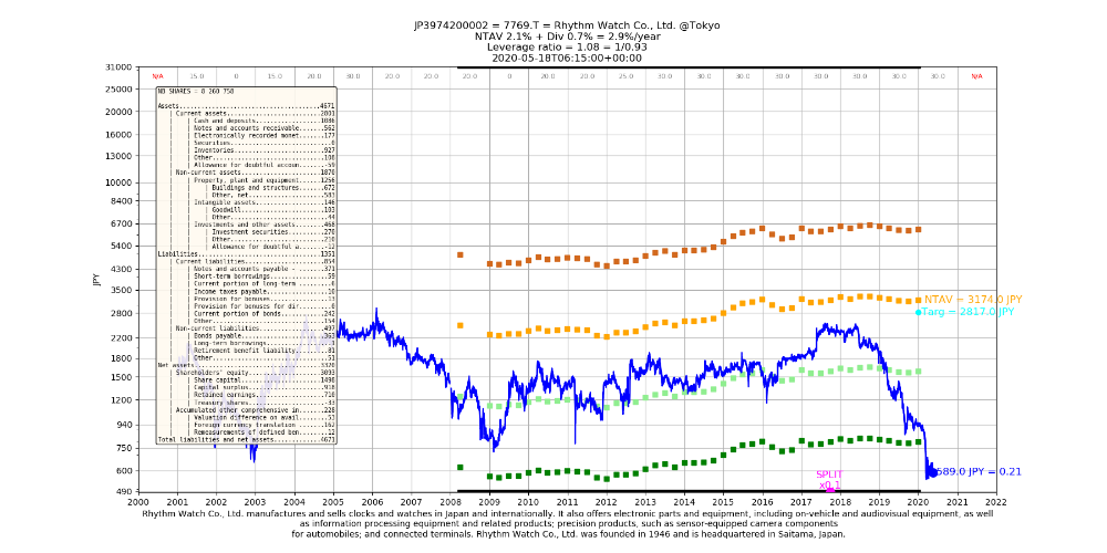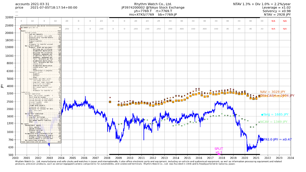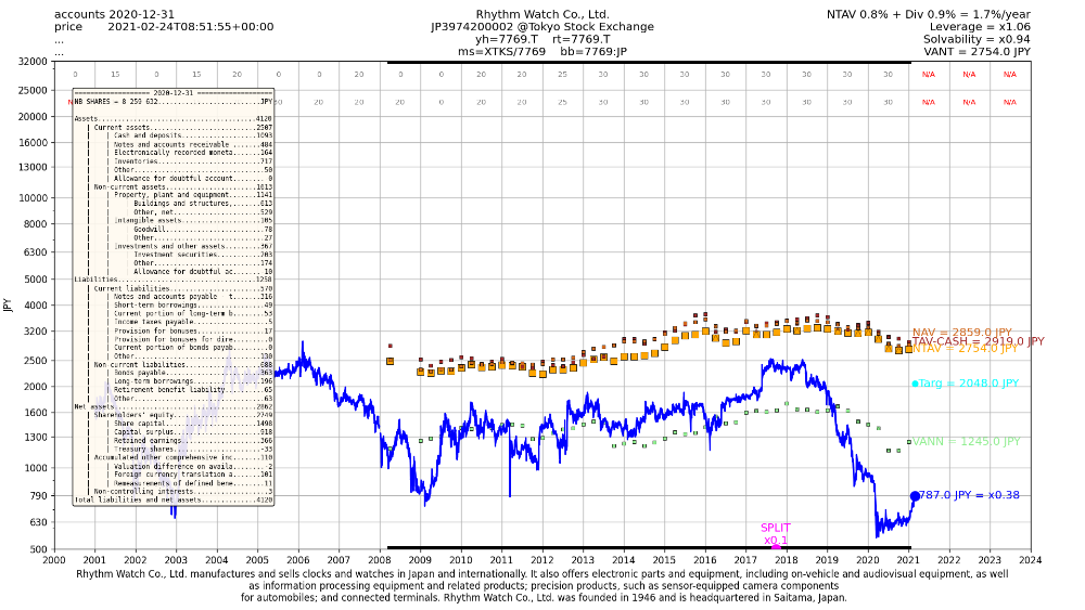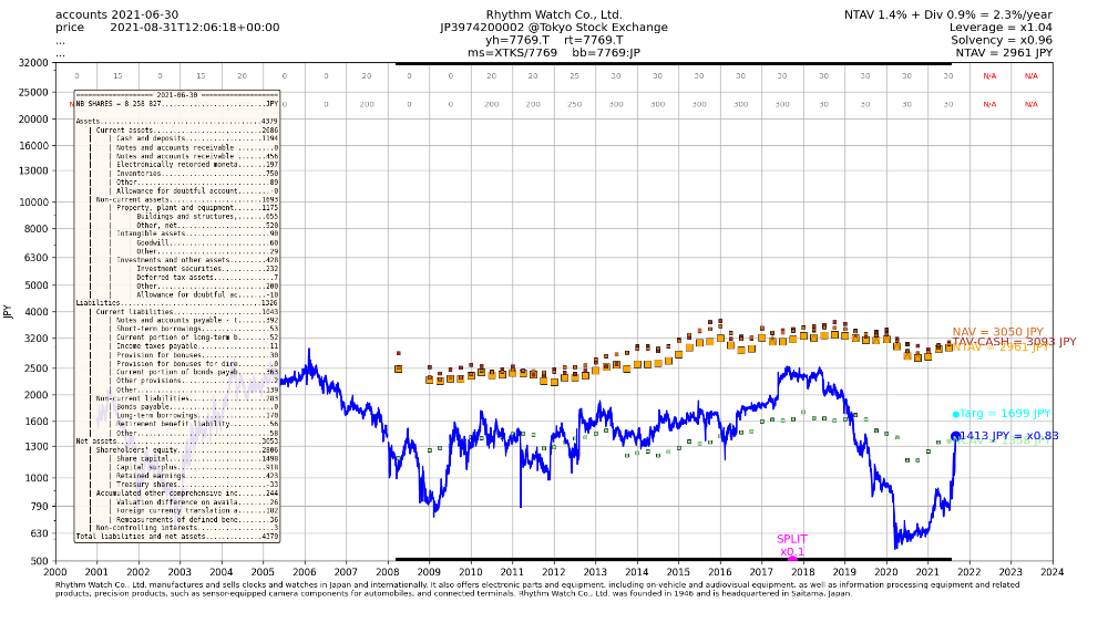 Si 7769 ne crée pas plus de valeur que ces 10 dernières années, alors il est a mon avis illusoire d'espérer revendre au niveau de la VANT, sauf irrationalité ou OPA, bien sûr tout reste possible. Mais si rien de particulier ne se passe un objectif du genre 1 700 JPY me semble plus réaliste, dans ce scénario là, la décoté n'est plus aussi importante que j'ai pu le penser auparavant.