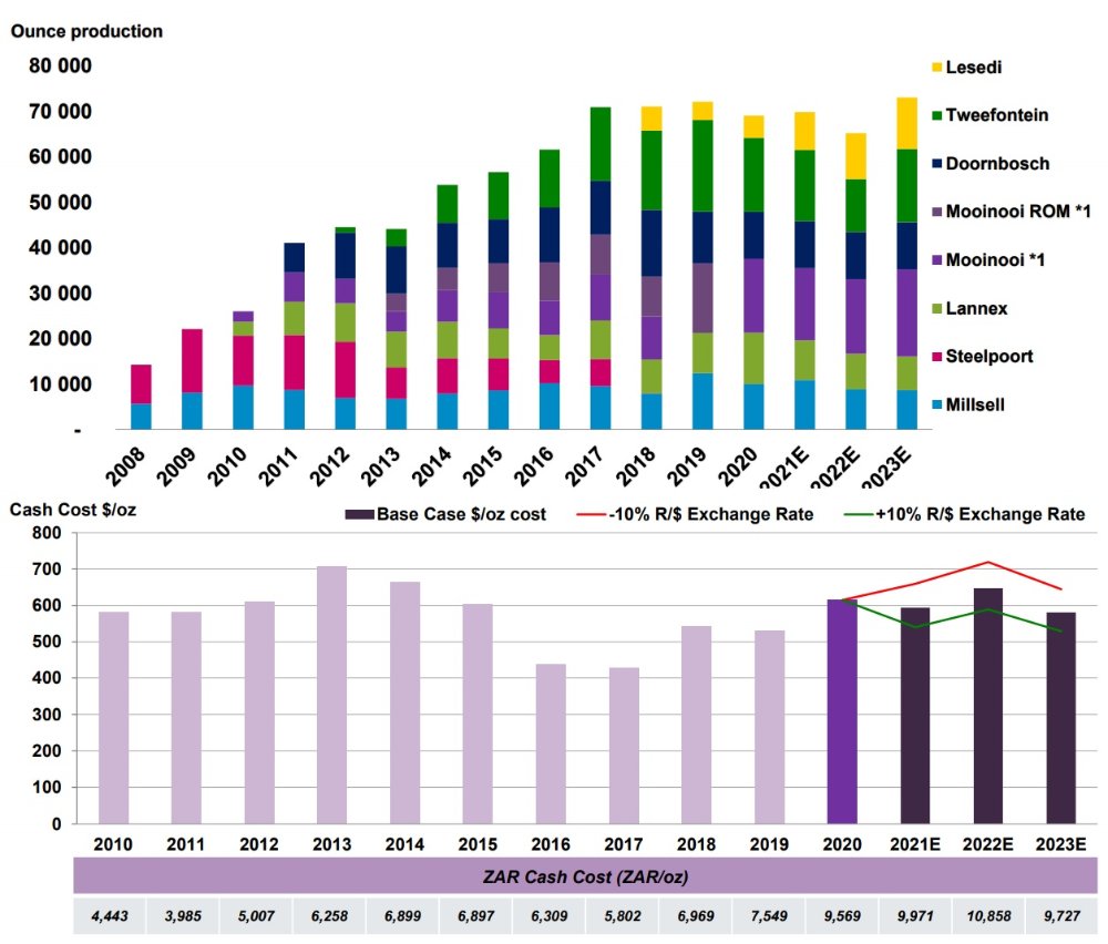 Je note aussi que le cash est en Rand et va souffrir par rapport au dollar. Point positif, la faiblesse du rand va améliorer les coûts de production.