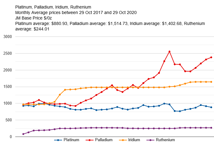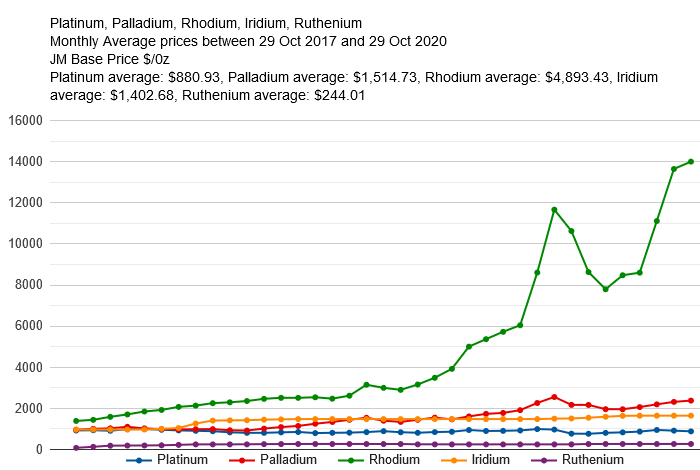 Regardez l'évolution des platinoïdes sur 3 ans (hors rhodium puis avec le rhodium) :