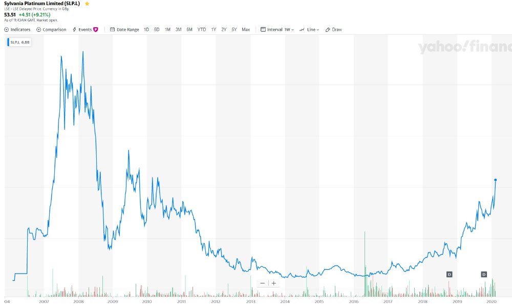Je me rassure en regardant la courbe historique du cours de Sylvania (en espérant avoir comme en 2008 le temps de sortir au plus haut) mais surtout car les cours actuels du rhodium et du palladium vont remplir de cash les caisses de Sylvania.