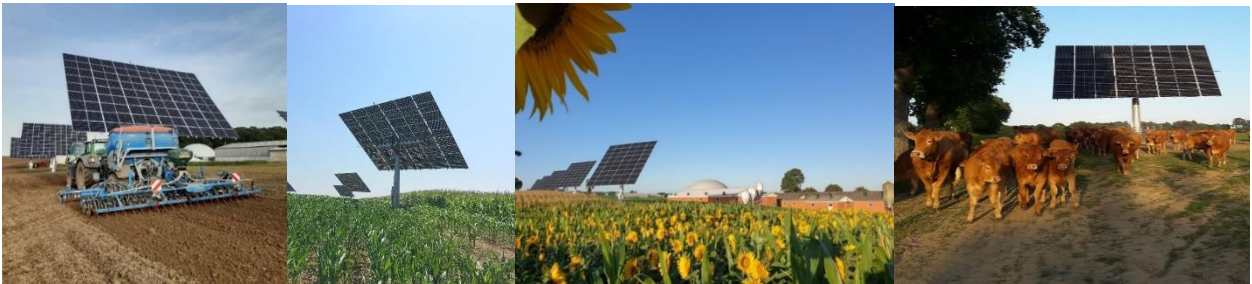 L'avantage de la techno de OKwind c'est que les panneaux sont posés au sol et peuvent capter la lumière sur plusieurs axes. Ils n'entravent pas la place au sol et permettent donc de continuer de cultiver les sols :