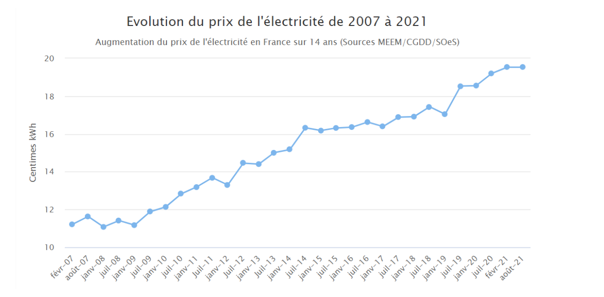 Un autre point majeur qui rend notre boite viable c'est bien entendu l'évolution du prix de l'électricité :