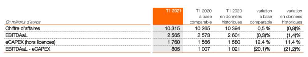 Orange a publié ses résultats du 1er trimestre 2021 :
