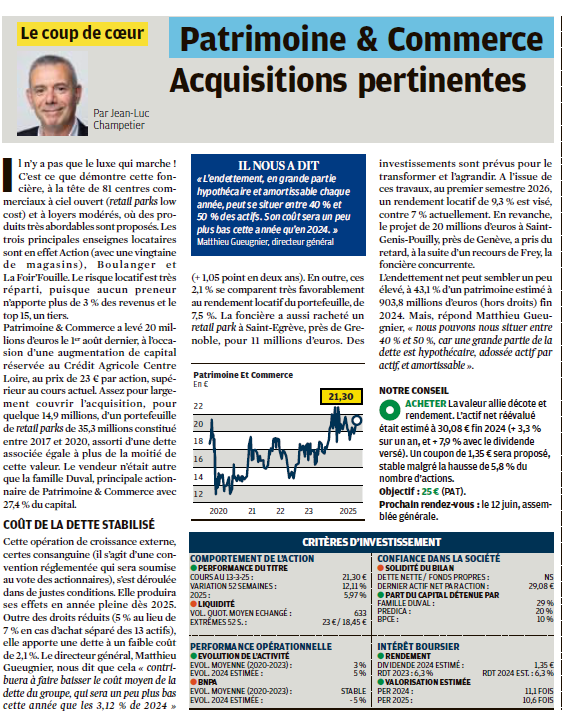 PATRIMOINE & COMMERCE vient de publier ses résultats 2024.