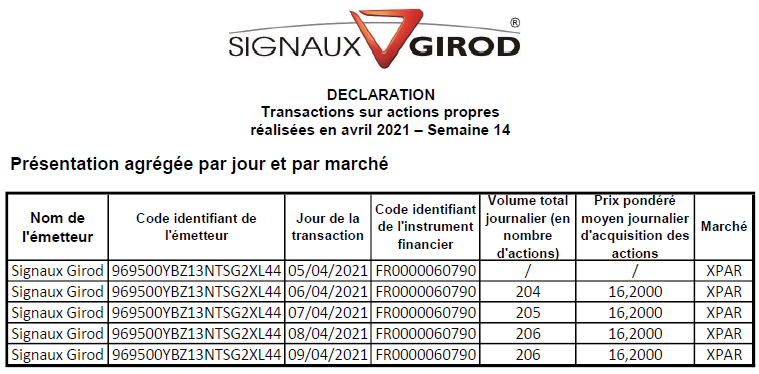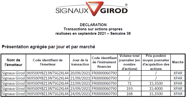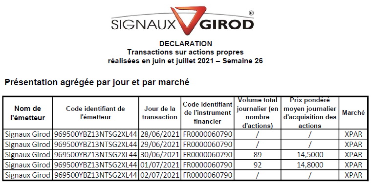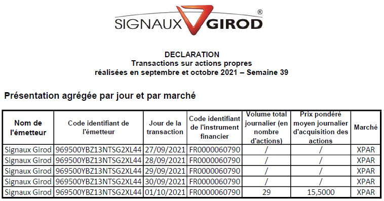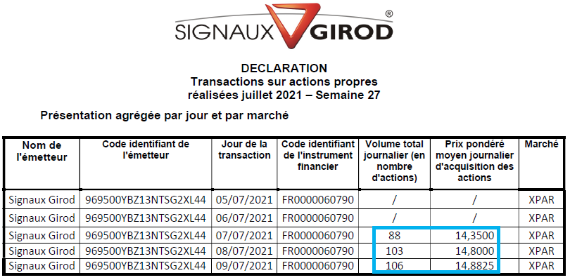 Signaux Girod continue à créer tranquillement mais sûrement de la valeur avec ses rachats d'actions quotidiens.