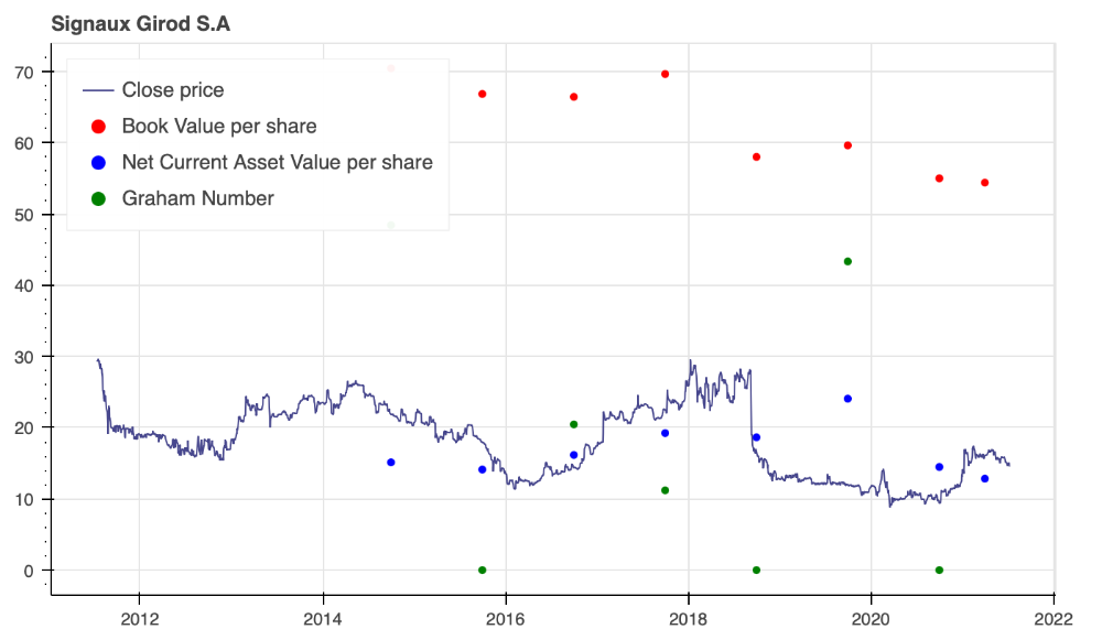 Voilà ce que j'obtiens pour prendre du recul en terme de Book Value et et de VANN. La pente descendante m'incite à passer mon chemin.