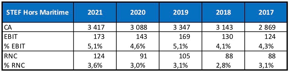 Pour avoir une idée de la performance de STEF sur son cœur de métier, j’exclue donc l’activité maritime des résultats financiers dans le tableau suivant :