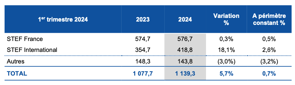 Stef - Chiffre d'affaires 1er trimestre 2024