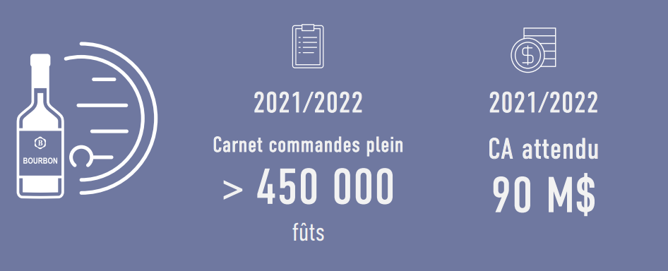 • Tonnellerie à Whisky et Bourbon : 288 collaborateurs dans 7 Maisons aux USA et Royaume-Unis ont une activité de négoce, entretien, réparation et recyclage de fûts pour l’élevage et le vieillissement du Whisky et du Bourbon