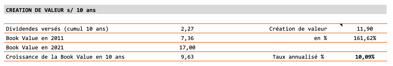 Création de Valeur : et justement en terme de création de valeur, TFF génère celle-ci à hauteur de 10% par an depuis 10 ans, ce qui est très honorable.
