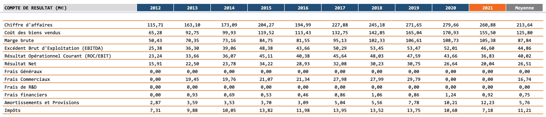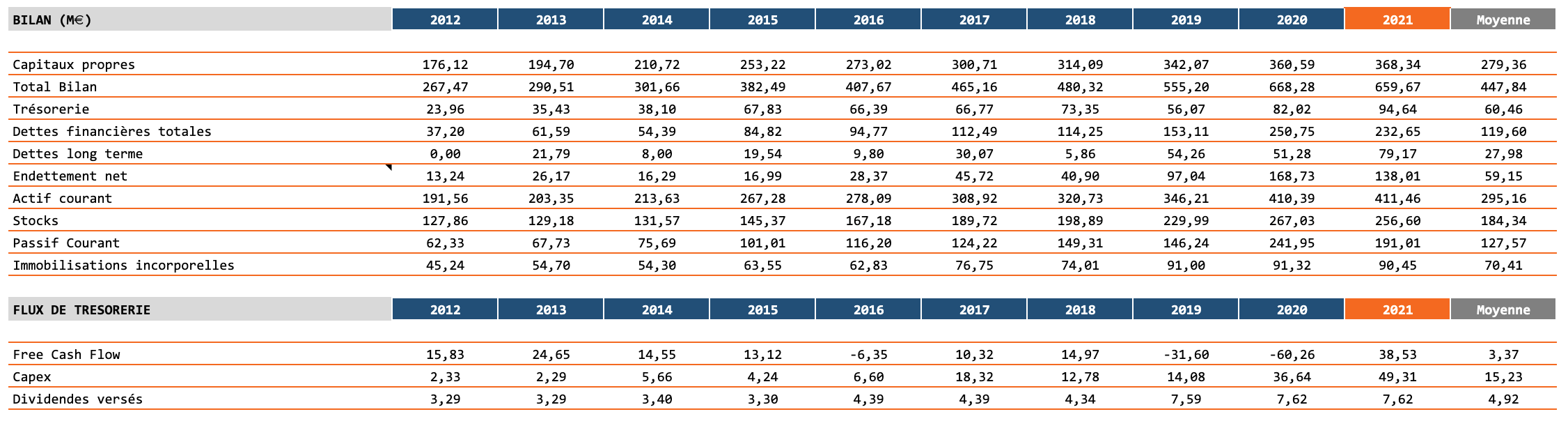 Compte de Résultat, Bilan, Flux de Trésorerie : aucun exercice en perte en 10 ans. Free Cash Flow record en 2021.