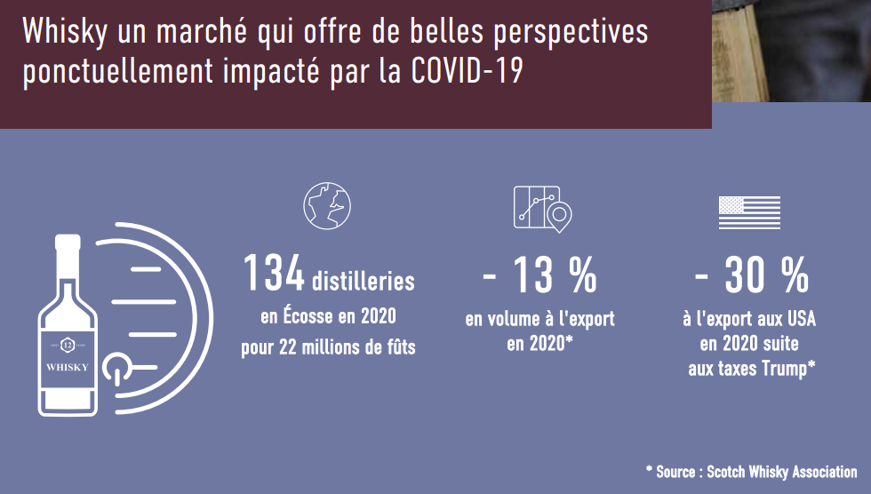 - Un marché du Whisky dynamique mais contrarié par des problèmes logistiques et le manque de fûts à Bourbon usagés,