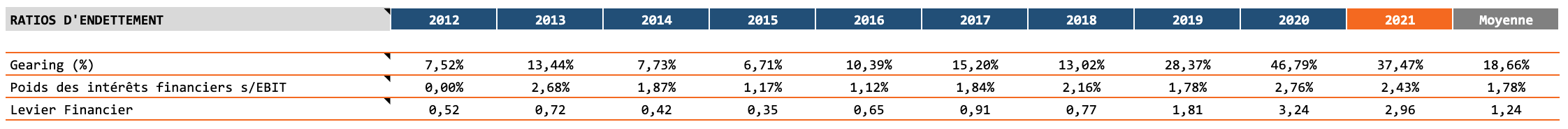 Endettement : avec un gearing de 37% nous pouvons être rassurés, le groupe maitrise sa dette.