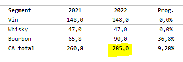- La poursuite de la croissance sur le marché du Bourbon, cependant toujours sous la pression des coûts de matières premières et les difficultés de recrutement.