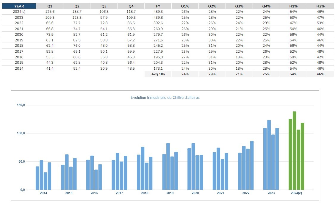En complément, voici une illustration de l'évolution du CA par activités et la saisonnalité trimestrielle/semestrielle du CA :